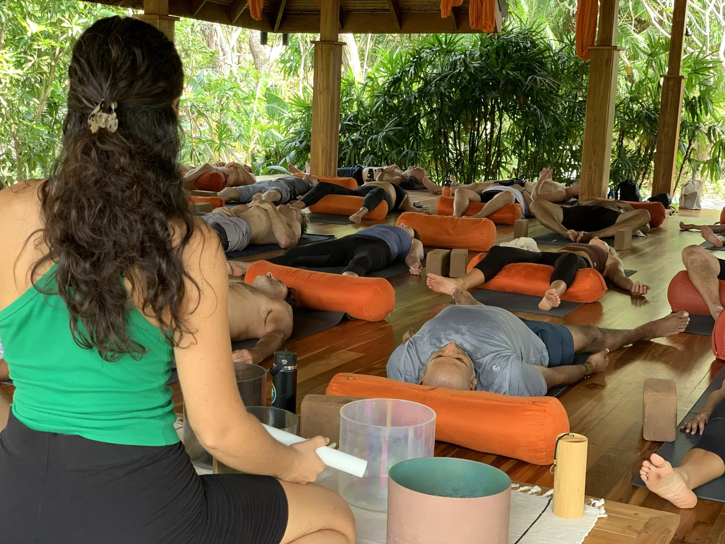 Tess holding sound healing in Nosara, Costa Rica.
